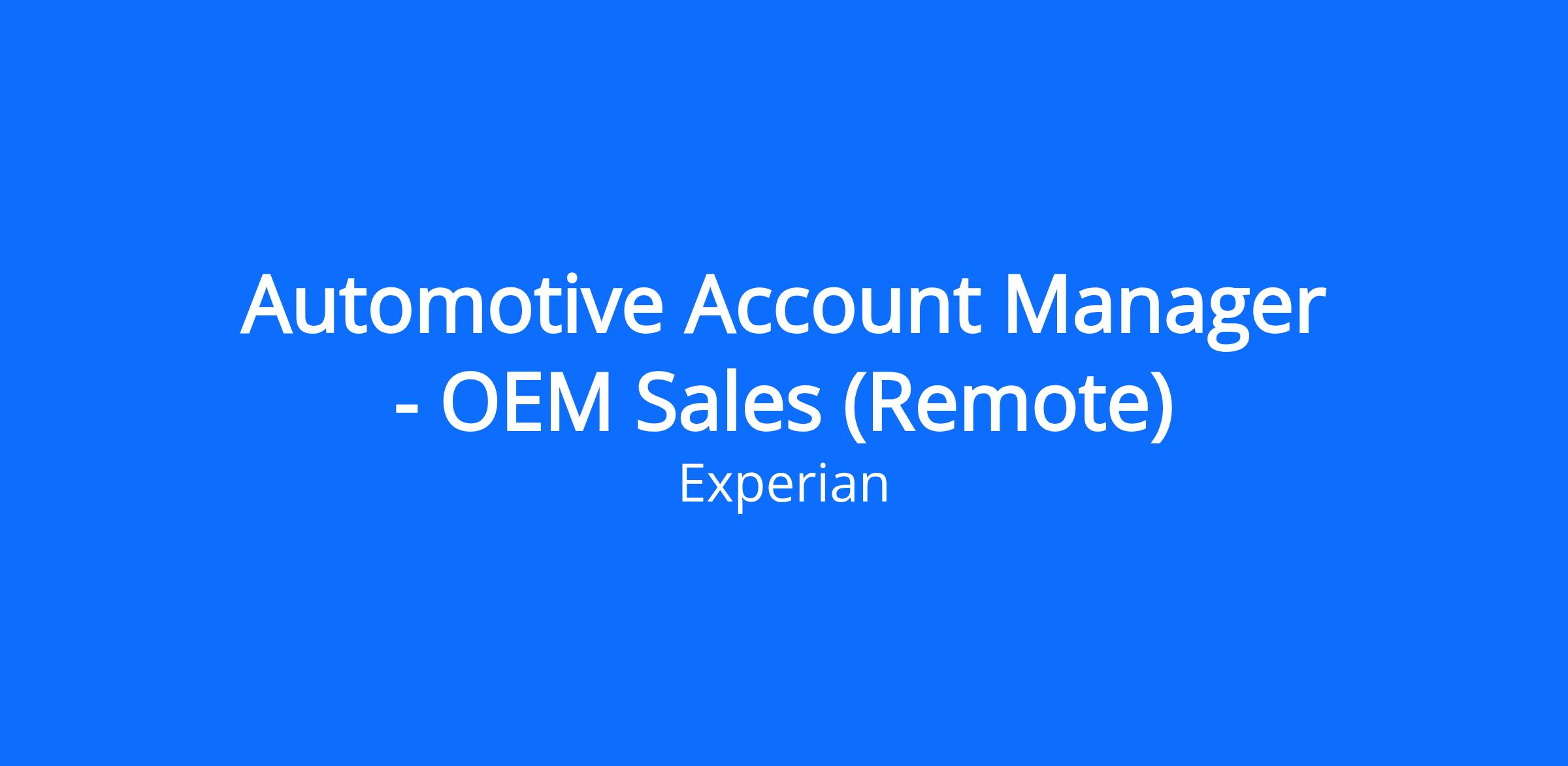 We are looking for an Automotive Account Manager for the OEM Account Team. Using the full range of Experian's data and technology resources, you will enable OEM partners to maximize the value of Experian solutions, thereby enhancing their market presence and sales performance. The Account Manager will oversee a designated portfolio of existing accounts, collaborating with Strategic Account Executives to ensure account retention, promote cross-selling, and identify opportunities for new business development within these accounts. You will demonstrate initiative, creativity in generating opportunities, and a proven track record of fostering client relationships. You will report to Senior Director - OEM Solutions.