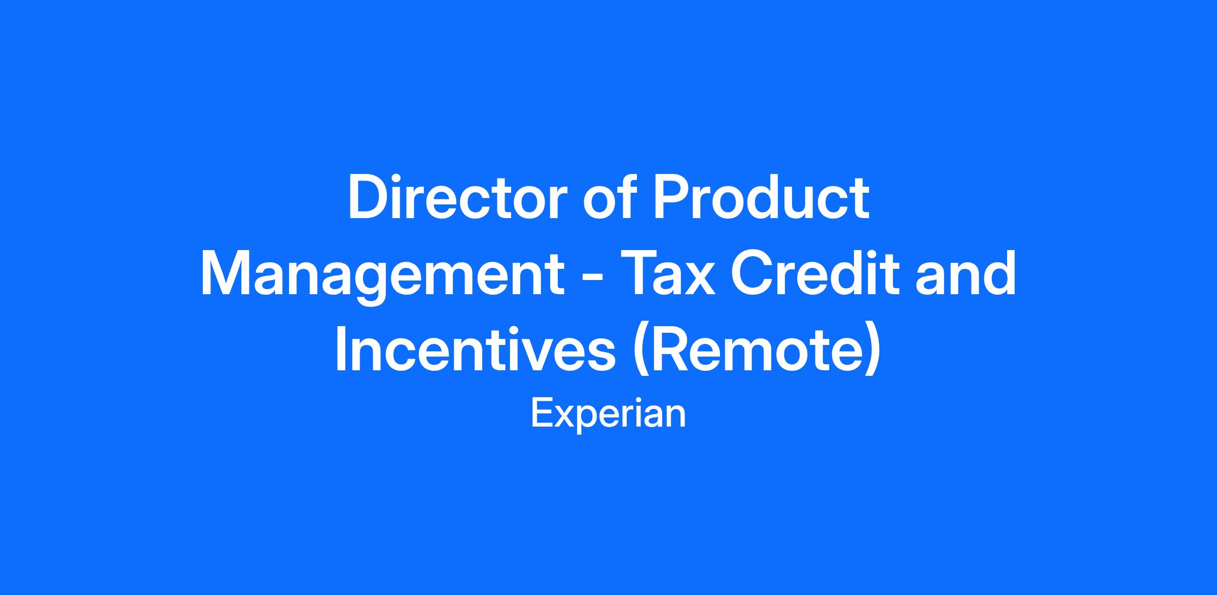 We are looking for a Director of Product Development who can readily adapt, instill confidence in internal and external partners and drive results. In this role, you will exhibit technical acumen and business savvy with a curiosity to learn and willingness to collaborate. You will oversee a portfolio of products within the Tax Credits and Incentives business, driving strategy, alignment, and execution across the product lifecycle. You define product vision, shaping the roadmap, translating market and client needs into actionable plans, and ensuring solutions meet Experian's growth, compliance, and customer satisfaction goals.