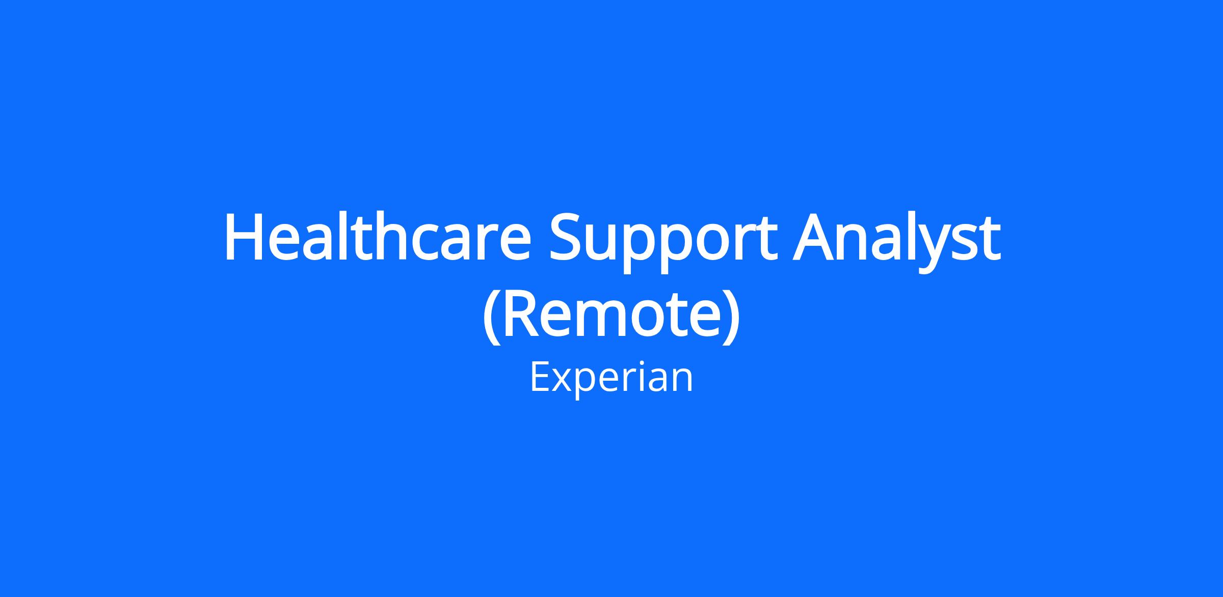 As Healthcare Support Analyst, you will: