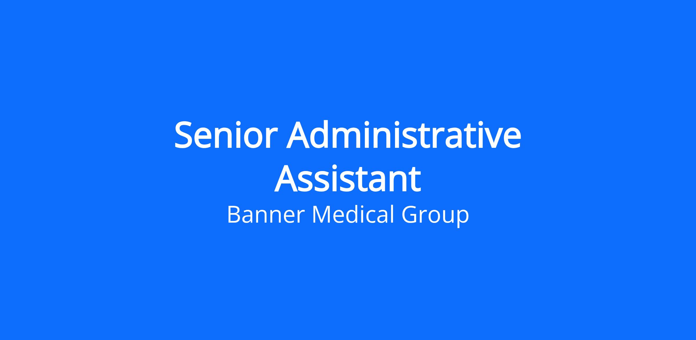 $23.16 - $34.74 / hour Banner Health is committed to pay equity and transparency. The posted compensation range is a reasonable estimate that extends from the lowest to the highest pay Banner Health in good faith believes it might pay for this particular job, based on the circumstances at the time of posting. This range is based on possible base salaries and does not include the value of our total rewards package. Actual pay determined at offer will be based on years of relevant work experience, education, certifications, skills, and geographic location, along with a review of current employees in similar roles to ensure pay equity is achieved and maintained.Bring your passion for patient care to our mission of making health care easier. Your career as an Administrative Assistant Senior offers a wonderful opportunity to make a difference in the lives of our patients. The position will support two of our Sr RN Clinical Services Officers as well as two of our HR Directors