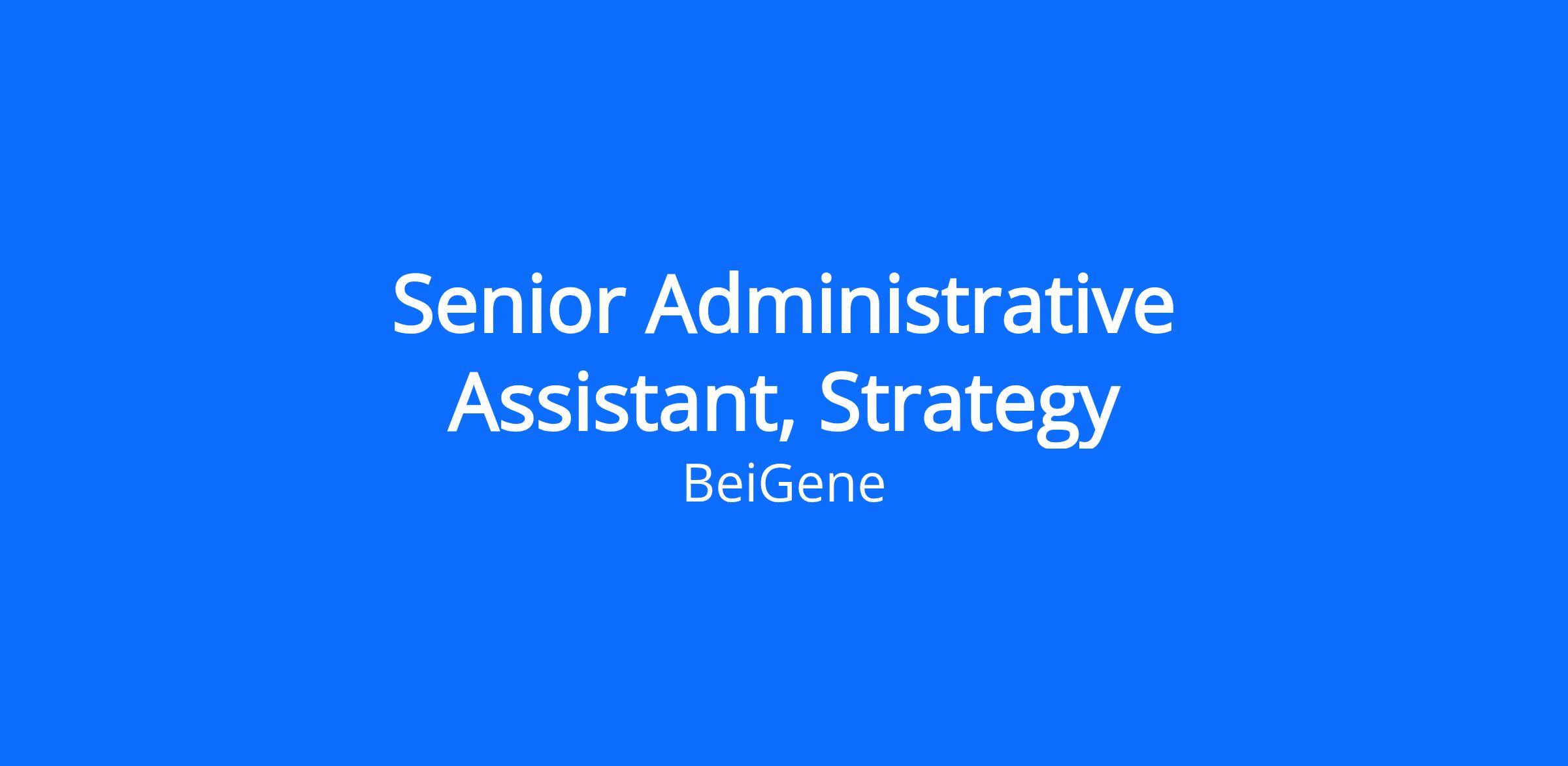 BeOne Medicines is seeking an experienced Senior Administrative Assistant to support the Head of Strategy and other department members. The person in this role will need to be an experienced, detailed-oriented problem-solver with exceptional flexibility to coordinate across functions. Additionally, the ideal candidate will have exceptional communication skills, the ability to manage the needs of many, be self-motivated, and demonstrates resourcefulness in building relationships across the global BeOne organization.