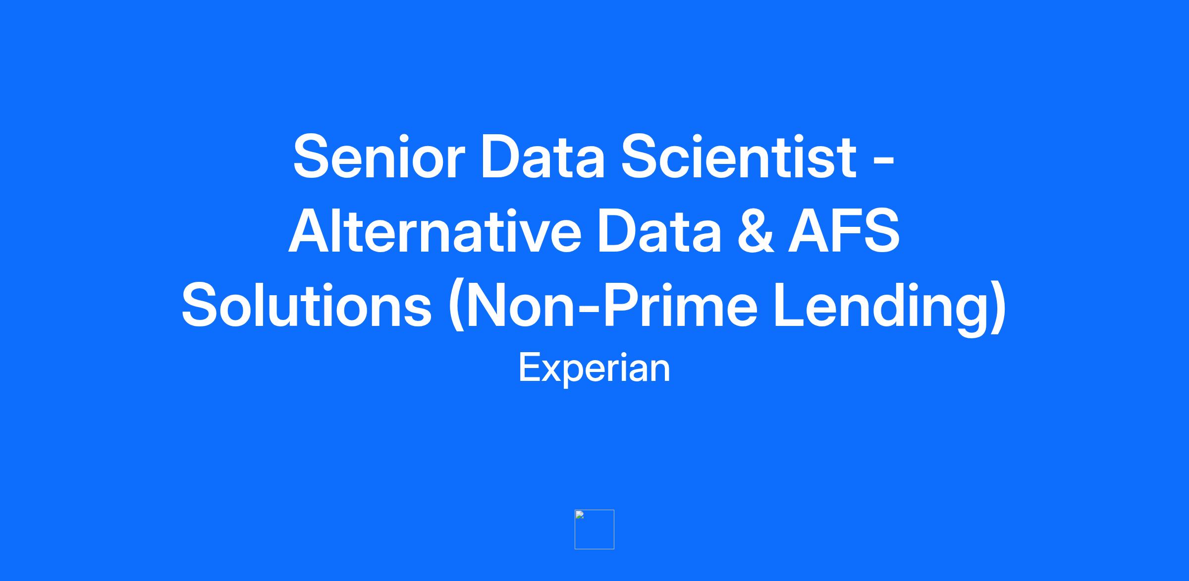 We are looking for an experienced Senior Data Scientist to join our Alternative Financial Services (AFS) department, supporting clients in the non‑prime and near‑prime lending markets. You'll design custom analytics, credit strategies, and machine‑learning models using both traditional and alternative data. This is a client‑facing, solution‑oriented role requiring technical depth and the ability to convert complex analyses into practical, applicable recommendations. You will report to the VP of Analytics Product Build, Innovation, and Scores.