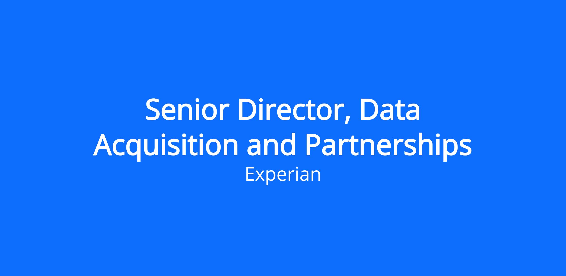 The Senior Director, Data Acquisition and Partnerships, will develop, manage, and optimize data relationships that support and enhance Experian's Financial Services and Data (FSD) business. You will navigate the dynamic financial data ecosystem to understand the players, their relative strengths and capabilities, and assess the right partners for Experian. You will manage vendor relationships and ensure compliance with regulatory standards, while optimizing spend to drive the highest data ROI. You will collaborate with internal organizations, including data management, data governance, product management, sales, finance, procurement, and legal.