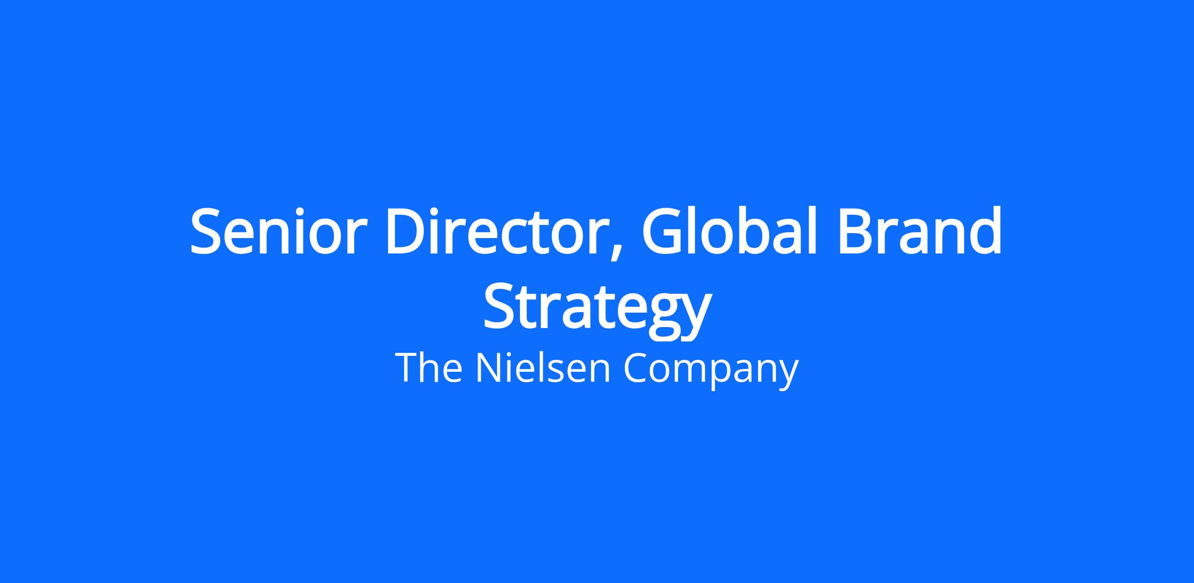The Senior Director of Global Brand Strategy is a key marketing leader responsible for developing and executing brand strategies for Nielsen across audiences and customer touchpoints. This role drives the brand positioning and integrated marketing process, and ensures the brand is perceived with consistency as the authoritative leader in the media and content measurement industry.