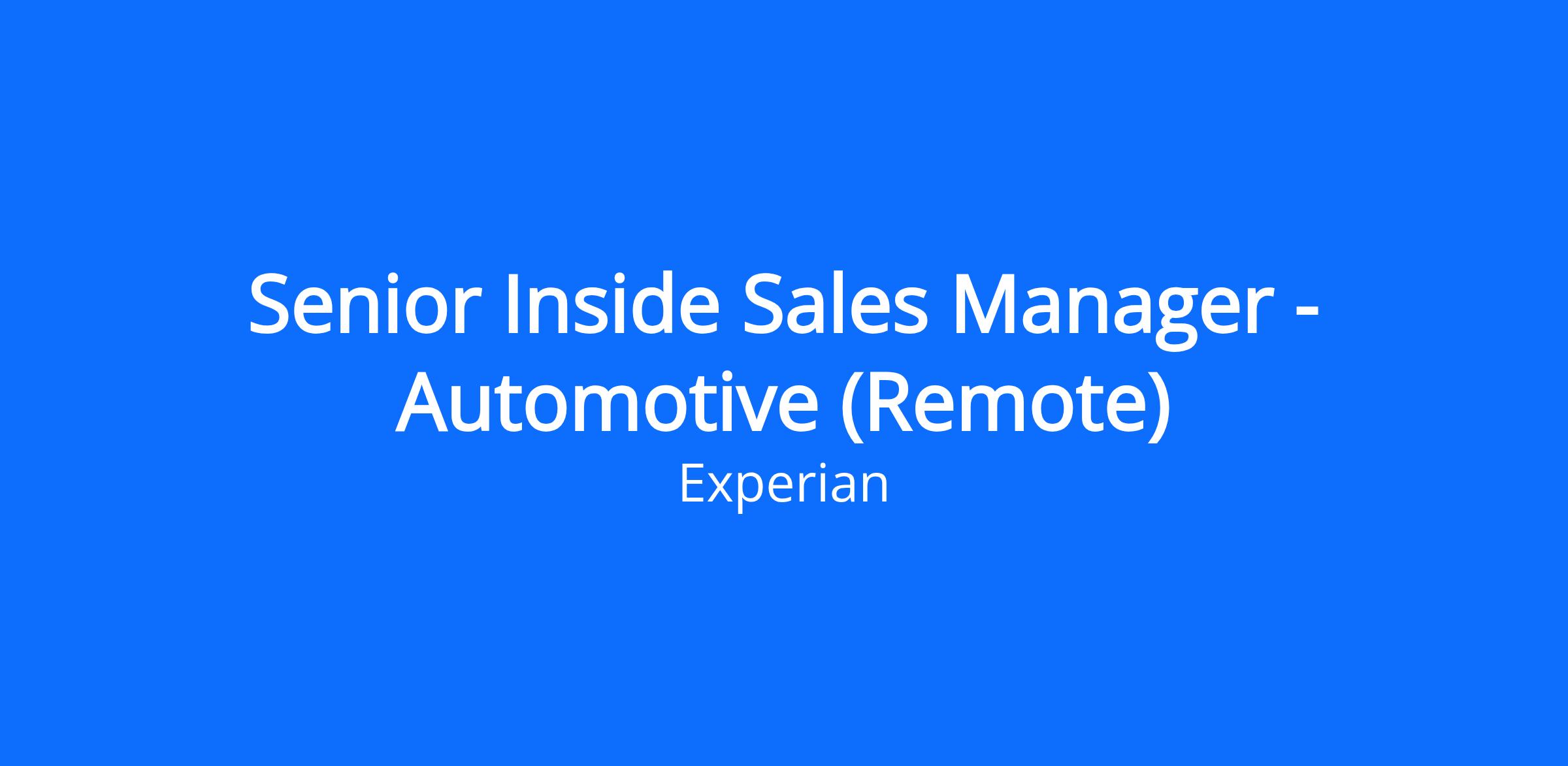 The Senior Inside Sales Manager is responsible for building, leading, and scaling Experian's newly formed Inside Sales organization. You will own team revenue performance, pipeline generation, sales execution discipline, and operational infrastructure across a high-velocity, quota-carrying AE team.