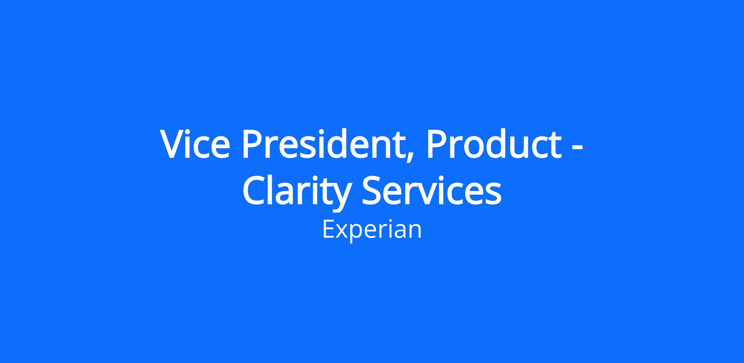 The Vice President, Product – Clarity Services is responsible for defining and executing the product strategy for Experian’s Clarity business, a critical component of our alternative data and risk solutions portfolio.